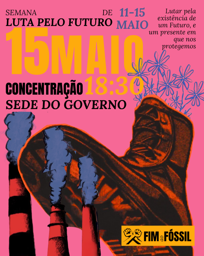 Vamos organizarmo-nos e protestar nas nossas escolas, para depois nos juntar-mos todos à concentração em frente à sede do governo, às 18:30, onda toda a sociedade se pode juntar para lutar pela existência de um futuro onde queremos viver e construir o poder necessário para parar quem nos condena.