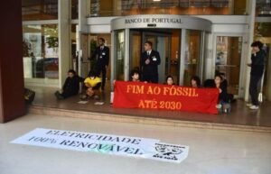 Bloqueámos o edifício do Banco de Portugal, impedindo a entrada no edifício, num protesto para denunciar o investimento do Governo Português na indústria fóssil, e a falta de investimento na transição energética justa.