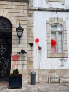 Os estudantes pelo fim ao fóssil de Coimbra atiraram tinta à Câmara Municipal, em protesto por planos que vão aumentar as emissões da cidade
